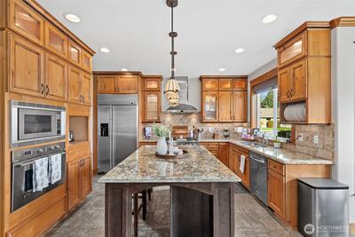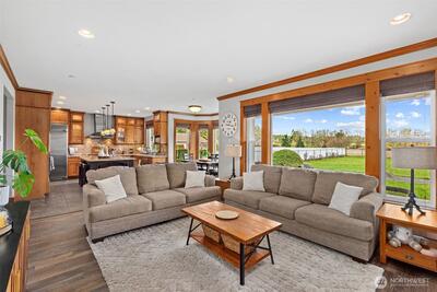 Tucked away on nearly 2 acres, this exceptional 3,677 sq ft custom home offers the perfect blend of space, comfort, and functionality. With 4 bedrooms, 3 baths, a dedicated office/den, and a massive bonus room, there is room for everyone to live, work, and gather with ease. The inviting wraparound porch sets the tone for relaxed Northwest living, while inside you’ll find rich finishes, multiple fireplaces, and generous natural light throughout. The gourmet kitchen features a large island, abundant cabinetry, and seamless flow into the main living areas—ideal for entertaining or everyday living. Upstairs, the primary suite offers a peaceful retreat with ample space, thoughtful finishes, a spa like bathroom and amazing walk in closet. Custom closet systems enhance organization throughout the home. Recent major upgrades provide peace of mind, including new HVAC, A/C, and hot water tank in 2024. The home also includes dual electrical panels, water filtration, and for added safety, a fi