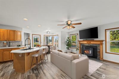 Discover peaceful country living in this move-in ready home on acreage packed with upgrades and space to grow. The open-concept kitchen features corian countertops and a large island with plenty of cabinet space. Stay comfortable year round with A/C, pellet stove and back-up generator for peace of mind. Step outside to your own mini farm: fully fenced and cross fenced with mature landscaping, fruit trees, garden space, 2 pasture areas, stable and storage shed. Unwind on the spacious deck or soak in the hot tub under the stars. Detached Carport specifically for RV parking, and room for parking for all your toys. This rare property blends comforts, functionality, and rural charm. Come enjoy the space and freedom you've been looking for. Great commuter location just minutes from JBLM.