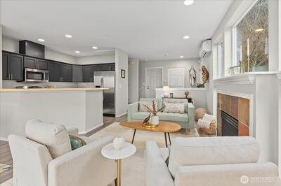 Welcome to Alki Living! Perched atop Elliott Bay with views of the Cascades and Seattle Skyline, this townhome style condo for sale is the one you've been waiting for in West Seattle. Watch the sunrise from either of the 2 private decks. Cozy up to the fireplace on chilly days, or throw the sliders open to enjoy the HUGE deck - perfect for BBQ's, outdoor dining, and watching the action. Upper level primary suite with en suite bath, deck, and tons of natural light. It's so spacious there is room for a sitting area. Relax in the connected bathroom with dual vanity and walk-in closet. The ground floor 2 bedrooms proved space for everyone or host guests in their own private space. One bedroom opens out to another private patio perfect for a home office. Low HOA dues cover water/sewer/garbage/landscaping/earthquake insurance. RARE 2 car attached garage for parking and storage. Efficient mini splits with A/C. Rentals are permitted with some restrictions. This is the West Seattle h