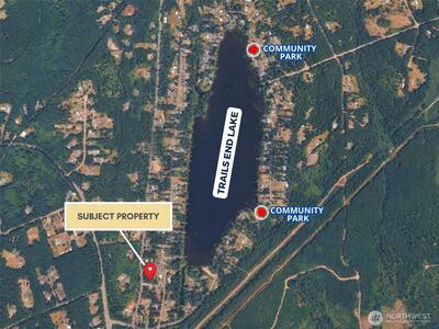 Here's a buildable 0.27 acre parcel Trails End Community outside Belfair. Public water and electricity are available in-street, and septic installation appears feasible with soils similar to those supporting the septic systems of the hundreds of surrounding homes. With only a slight bank along the paved road, this property has generally level topography. “There is no HOA, but with an optional community membership of just $75 per year, you'll have access to the ultimate backyard experience with a lakeside swimming hole, two private parks, a boat launch for the lake, a community clubhouse, and even private beach access on Hood Canal that's less than five minutes away. Trails End Lake is approximately 73 acres with a maximum depth of around 30 feet. The lake allows non-motorized watercraft only, creating a quiet and relaxing atmosphere. It is stocked multiple times each year with rainbow trout and is also known for largemouth bass and cutthroat trout. Conveniently located about 10 minut