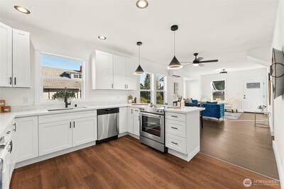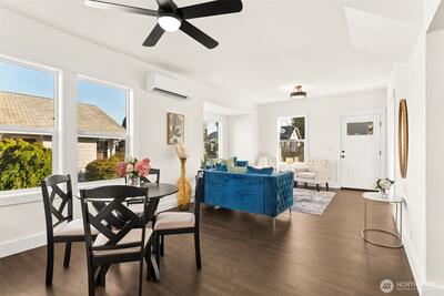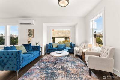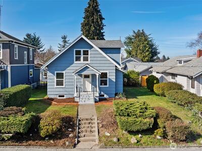 Discover this charming & beautifully updated 1911 home located in the heart of North Tacoma. Blending classic charm with modern conveniences, this property has been meticulously updated with refinished hardwood floors, new interior & exterior paint, drywall, flooring, trim, doors, fixtures, lighting, bathrooms, and kitchen. The main floor offers light-filled living & dining rooms, and the gorgeous kitchen featuring a new sink, fixtures, cabinets, and expansive granite countertops with a breakfast bar, lots of storage, new stainless steel appliances, including a modern in-cabinet refrigerator and freezer, along with one bedroom, a full bath, and a ¾ bath with laundry. Upstairs, you’ll find three good-sized additional bedrooms with peek-a-boo views of the Olympics. Stay comfortable year-round with two new Ductless HP mini-splits & additional wall heat. Wired for solar. The home also includes an 864 sq ft unfinished basement for added storage or additional square footage, alley access
