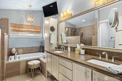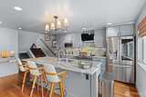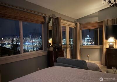 Perched at the end of a private homeowner-owned lane, this West Seattle retreat captures sweeping city skyline, Elliott Bay and Cascade Mountain views from both the main living spaces and the primary suite. Morning sunrises illuminate the Cascades while ships glide through the Sound. Evenings deliver a spectacular skyline show — the Space Needle, Great Wheel and Lumen Field lights shimmering across the city. Inside, the home blends comfort and style with Brazilian Cherry hardwoods, expansive windows and an open-concept living area centered around a gas fireplace, all flowing seamlessly to a view deck designed for soaking in Seattle’s most iconic vistas. The chef’s kitchen offers granite counters, stainless appliances, generous prep space and an oversized eating bar, perfect for entertaining or everyday living, with custom motorized window coverings framing the view. Upstairs, the primary suite feels like a private lookout over the city, complete with panoramic views and a spa-in