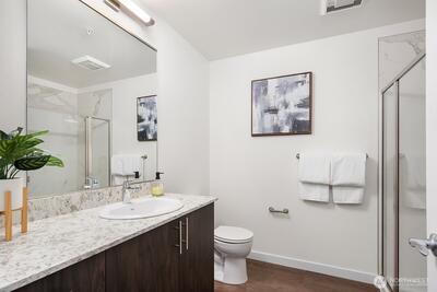 A stylish studio condo perfectly situated in the heart of downtown Bellevue. This thoughtfully designed space offers efficient, open-concept living with expansive windows that bring in abundant natural light while maintaining privacy. The modern kitchen features quality finishes and is ideal for both everyday living and entertaining. The smart layout maximizes functionality, creating a comfortable living, dining, and sleeping area within one seamless space. Enjoy unbeatable walkability just steps from Bellevue Square, top dining destinations, cafés, parks, and major employers. Leave the car behind and experience vibrant urban living at its finest. A fantastic opportunity for first-time buyers, investors, or anyone seeking a low-maintenance lifestyle in one of Bellevue’s most desirable locations.