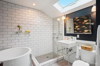 Charming Portage Bay Dutch Colonial offers privacy and views in an unbeatable location! This meticulously maintained home features a perfect mix of old-world charm and contemporary flair, boasting hardwood floors, covered porches, and an airy, open floor plan. The updated kitchen serves as the heart of the home, leading directly to a private backyard oasis with a spacious deck and professionally landscaped lush gardens. Three light-filled bedrooms are situated on the upper level, including a bathroom with a luxury Japanese soaking tub. Finished basement provides extra flex space and ample storage. Minutes to UW, Capitol Hill, and the tech hub at SLU. Easy access to the eastside/Bellevue via 520 or 90. This is the perfect urban sanctuary.