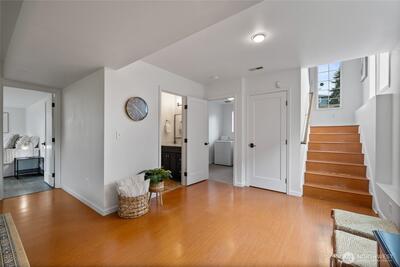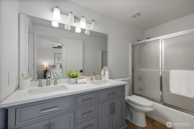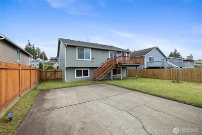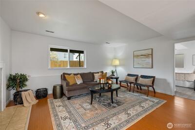 Beautifully updated split-level home in South Tacoma offering 4 bedrooms and 2.5 baths. The light-filled upper level features a spacious living and dining area seamlessly connected to the kitchen—ideal for everyday living and entertaining. The thoughtfully designed kitchen showcases high-end stainless steel appliances, including a gas range and smart refrigerator. Throughout much of the home, you’ll find newer interior doors, upgraded hardware, and refined millwork that elevate its modern appeal. The inviting lower-level living room offers a cozy gas fireplace, creating the perfect space to relax or host guests. Bathrooms have been tastefully updated, and select areas feature newer luxury vinyl plank flooring. Several windows have been upgraded, including a Milgard sliding glass door off the kitchen that opens to the upper-level deck overlooking the backyard. Additional improvements include a brand new furnace, newer roof, upgraded attic insulation, and water heater. Enjoy outdoor