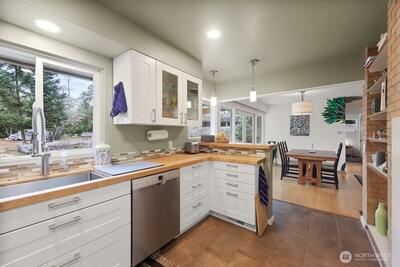 Very sunny, single level home well appointed in Innis Arden. This mid century rambler with three bedrooms and one and three quarters baths, sits on nearly a half acre. Recent updates to kitchen with butcher block countertops and three year old appliances stay.You are steps from trails to the beach. There have been extensive upgrades. New sewer line, newer furnace, newer windows, water heater, gas fireplace for those CHILLY NW nights. Go out the French Doors to a NEW pergola with skylights to enjoy BBQ's or morning coffee. The south facing home has installed and paid for Solar Panels that equal $10 utility bills. The seller has planted hundreds of flowers and fruit bearing trees. All this on a quiet dead end street and just minutes to the pool and clubhouse. The external home office affords privacy and its own covered patio. The large garage has a room for a shop area.