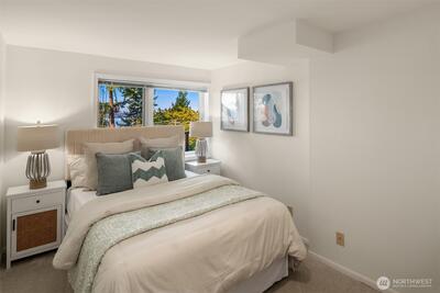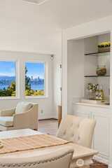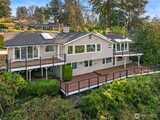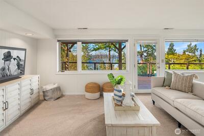 Nestled in the heart of Mercer Island, this mid-island residence captures the very essence of Pacific Northwest living, pairing sweeping west-facing sunset views with fresh, thoughtful updates throughout. A private courtyard entrance creates a warm and welcoming arrival experience, offering both seclusion and architectural charm before stepping inside. The main living areas and primary suite are ideally positioned to showcase vistas of Lake Washington, the Downtown Seattle skyline, and the majestic Olympic Mountains. Vaulted ceilings elevate the gathering room, where an open-concept kitchen flows effortlessly into light-filled spaces designed for both daily comfort and refined entertaining, while multiple decks seamlessly extend living spaces outdoors. Fresh interior paint, new carpeting, and beautifully updated kitchen and primary bath create a truly move-in ready experience. Beyond the main living spaces, the home continues to impress with a dedicated view studio providing inspiring