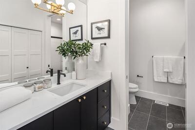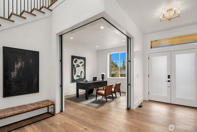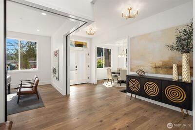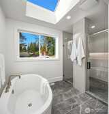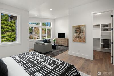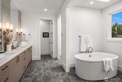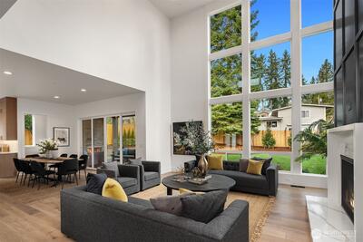 Sophisticated new construction with dramatic spaces in a desirable Bellevue neighborhood. Breathtaking in design and light-filled with every custom feature and room on your list. Designer finishes combine to define next level living in a friendly, bright and open layout. Striking 2 story window wall in the Great Room allows ample light to pour into the showpiece kitchen and dining area. The gourmet kitchen boasts a huge entertaining island with prep sink, walk-in pantry and butler’s pantry, contemporary cabinetry, and elite Thermador appliances. The luxurious and generously sized primary suite has a sitting lounge, built-ins and spa-inspired bath. Enjoy heated floors, freestanding Kohler soaking tub, walk-in shower with dual showerheads, dedicated makeup vanity, and two oversized walk-in closets. The Tribeca floorplan by Cade Hill homes is for those that need a little extra space: a main floor junior suite, main floor office, upper level bonus room, plus a guest bedroom wing that sha