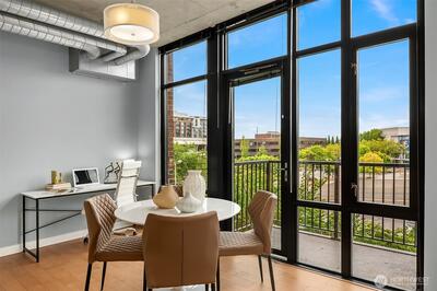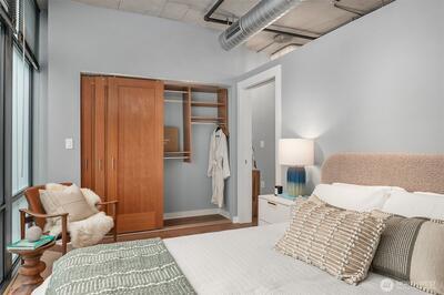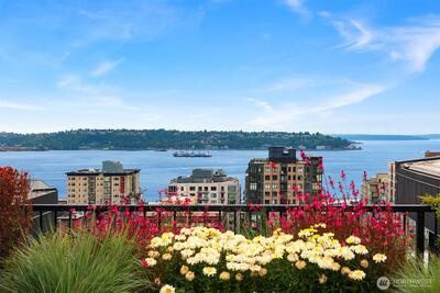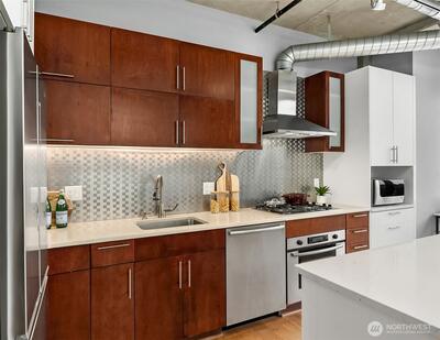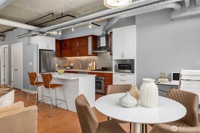 Over $20k in recent updates! Step into the vibrant, artistic energy of Seattle at the iconic Mosler Lofts. This recently updated corner-unit home blends industrial character with modern luxury. Soaring floor-to-ceiling windows, sleek finishes, and the most iconic view in the city: the Space Needle, framed perfectly from your living room, dining area, and private balcony. Inside, you’ll find a modern open floor plan with thoughtful updates, including a new kitchen island, upgraded lighting, and custom built-in closets & vanities. A stylish kitchen designed for entertaining, complemented by secure garage parking for convenience. Building amenities elevate your lifestyle with a lush rooftop garden/fire pit/BBQ, offering mountain & water views.