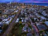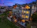 Sweeping views of Lake Union, Downtown, & Cascades can be enjoyed on four levels in this stunning end-unit townhome high on the east slope of Queen Anne. Natural light moves throughout the home & open-concept main living area is perfect for entertainment. Terraces on each level, including a spectacular rooftop area with sublime 180 vistas. High-end kitchen features stainless appliances, large pantry & expansive bar. Owners’ suite has private balcony & 5-piece spa-like bath with a jetted tub; 2nd guest bedroom w/ ensuite bath. Large top-floor bedroom has a dramatic vaulted ceiling, wet bar, & is exceptionally bright. Bonus home office/workout area w/ private patio + rare attached 2-car garage. Walk to vibrant SLU for work, shops, & dining.