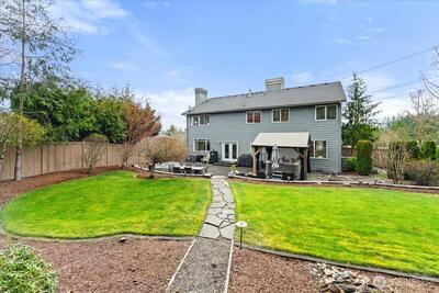Experience one of the most coveted homes on Snoqualmie Ridge. An exceptional former John Day model residence set on a rare 15,550 sq. ft. estate lot, nearly double the size of neighboring properties. Perfectly positioned with views of the 9th & 10th fairways of The Club at Snoqualmie Ridge, this private retreat captures sweeping views of Mt. Si, Eagle Lake, and cascades, offering a lifestyle centered around one of Washington’s premier golf communities. The 3,225 sq. ft. home has been thoughtfully refreshed with extensive 2025 updates, including brand-new luxury hardwood flooring throughout the main level, a beautifully remodeled designer bathroom, fresh exterior paint, and professionally curated landscaping featuring a custom fountain and private hot tub which creates an outdoor sanctuary ideal for entertaining or unwinding after a long day at work or on the course. Inside, five spacious bedrooms and refined open-concept living spaces blend sophistication with everyday comfort.