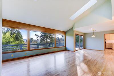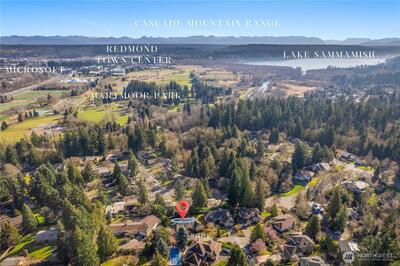 Architect's own home offered for the 1st time in the coveted Sheffield Court neighborhood of Redmond. Mountain Views impress from the moment you drive in and continue on from every room of the home. Located on a spacious lot, this expertly designed rambler with daylight basement features extra-large bedrooms, vaulted ceilings with skylights, and wall-to-wall windows designed to showcase the beautiful PNW VIEWS. The bright & open floorplan offers desirable main-floor living with the added flexibility of three lower-level bedrooms, full bathroom, plus a fully prepped unfinished bonus room ready to be customized to your needs. Add 280 additional square feet to make a 2,800 sq. ft. home to build instant equity! Enjoy scenic mountain & territorial views from the wrap-around deck overlooking the beautiful backyard ready to bloom with Spring & Summer color, perfect for gardeners and entertainers. The location is truly unbeatable with proximity to: Award-winning Lake Washington Schools, Marym