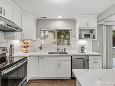 Welcome to an exceptional opportunity in Kirkland’s sought-after North Rose Hill—featuring a fully finished backyard studio and offering one of the area’s most compelling values. This beautifully maintained home blends comfort, convenience, and thoughtful updates, creating a truly versatile living experience. The inviting split-level design offers a functional, well-planned layout, highlighted by a tastefully updated kitchen and bathrooms that bring a fresh, modern touch. The light-filled main level showcases spacious living and dining areas that flow seamlessly into the kitchen, complete with stainless steel appliances and generous workspace. Downstairs, enjoy a large secondary living area perfect for relaxing or entertaining, along with a flexible den or office space. The lower level is also plumbed for a SECOND KITCHEN, offering excellent potential for multi-generational living or added flexibility. Step outside to a fully fenced backyard designed for both gathering and unw