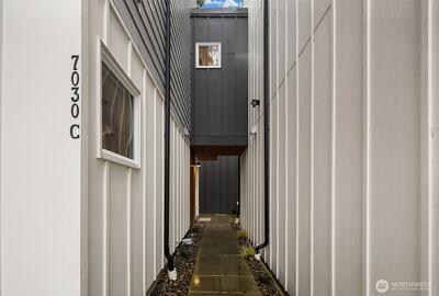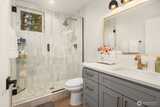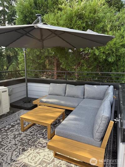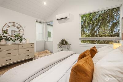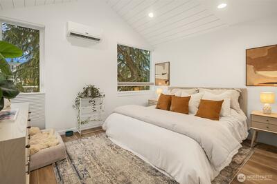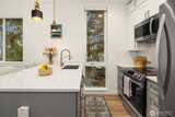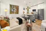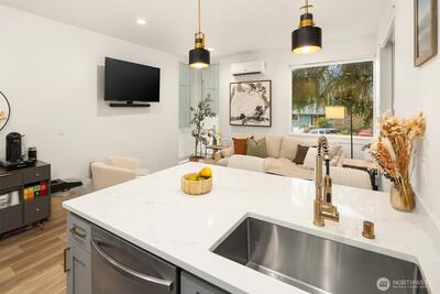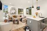 Modern Ballard living awaits in this beautifully designed 2-bed, 1.75-bath townhome offering approximately 1,123 square feet of thoughtfully crafted space. Tucked slightly off the street for added privacy, this contemporary home features an open-concept layout that seamlessly connects the living, dining, and kitchen areas—creating a bright and welcoming environment ideal for both everyday living and entertaining. Expansive windows invite natural light throughout the home, enhancing the airy feel and highlighting the clean, modern finishes. The well-appointed kitchen is the heart of the home, showcasing sleek cabinetry, quartz countertops, stainless steel appliances, and ample workspace for cooking and gathering. The spacious primary suite provides a comfortable retreat with generous closet space and a stylish ensuite bath featuring modern fixtures and finishes. A versatile second bedroom offers flexibility for guests, a home office, or creative space. Efficient ductless mini-split
