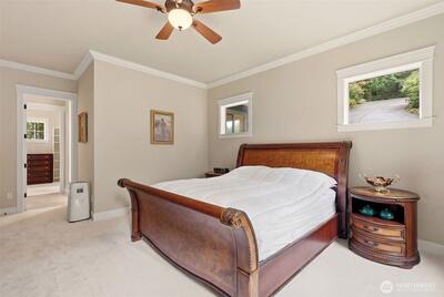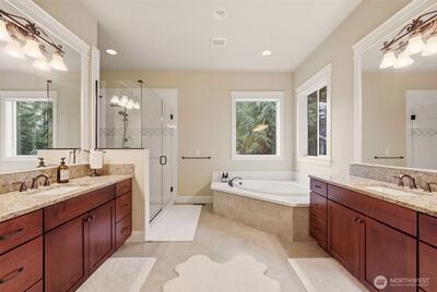 Discover elevated living behind the gates of Canterwood Golf & Country Club, Gig Harbor’s premier private golf community. Set against a serene greenbelt, this impeccably maintained residence blends elegance, comfort, and refined Northwest living. Spacious two-story design with main-level convenience features a luxurious primary suite—private retreat with spa-inspired bath and walk-in closet. Recent upgrades, including new primary shower/tub, hardwood flooring and plush carpeting, enhance the home’s welcoming atmosphere. Upstairs offers two large bedrooms, two full baths, and expansive living spaces including a large family/entertaining room and additional lounge—ideal for gatherings, media, or guest accommodations. Main-level living opens to a stunning outdoor retreat with covered pergola built from natural timber beams—perfect for dining, entertaining, or relaxing while enjoying privacy with the greenbelt. Meticulous care and updates reflect pride of ownership and elevat