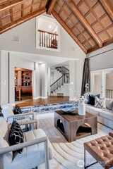 A Chateau-inspired estate where timeless architecture, extraordinary craftsmanship & a serene woodland setting create a home that feels both elegant & deeply private. A soaring entry welcomes you inside, where a striking dual staircase sets the tone for the home’s architectural presence. Two sculpted fireplaces anchor the formal living & family rooms, adding warmth, scale & sophistication. Honduran mahogany accents, vaulted coffered ceilings & curated finishes reflect a level of craftsmanship rarely seen today, showcasing a standard of design, materials & architectural detail often associated with a bygone era. The main level primary suite overlooks the surrounding woodlands & features a spa-inspired 5-piece bath & skylit atrium-style bonus room. Natural light fills every room, while French doors open to private outdoor spaces & a remarkable 1,370 sqft patio surrounded by mature trees, creating a seamless connection to nature. At the heart of the home, the chef’s kitchen features p