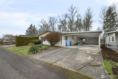 Spacious and well-maintained home in the desirable Mountain View Estates 55+ community. This 1,620 sq ft home offers 2 bedrooms, 1¾ baths plus a den with built-in workspace, providing flexible living for guests, hobbies, or a home office. New carpet throughout and vaulted ceilings with skylights create a bright, open feel with plenty of natural light.The kitchen features a breakfast bar and adjoining flex space perfect for informal dining, a sitting area, or additional workspace. Enjoy a large living room and separate formal dining area for comfortable everyday living and entertaining. The spacious primary suite includes a walk-in closet and oversized bath with double sinks. An efficient heat pump provides both heating and air conditioning for year-round comfort. Outside you'll find a private backyard plus an oversized carport with shop/storage area, workbench, and shelving, ideal for projects and extra storage. Major improvements included: Seller will install a new roof and replace 8