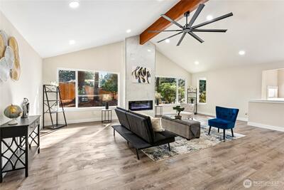 Live the life you’ve been dreaming of in this fully remodeled, with all permits approved for new construction in 2026, split-entry home in a top Puyallup neighborhood! With 3 bedrooms, 2.75 baths, and modern finishes throughout, this home offers an open kitchen with granite countertops, bright living spaces, and a flexible lower level that can serve as a family room, guest suite, or multigenerational living space. Bathrooms and the laundry room include built-in Bluetooth audio. Enjoy a 2-car garage, RV/boat parking, and a generous lot for toys or projects. Close to schools, parks, shopping, dining, and major routes. Move-in ready comfort, quality upgrades, and versatile space make this home perfect—don’t wait!