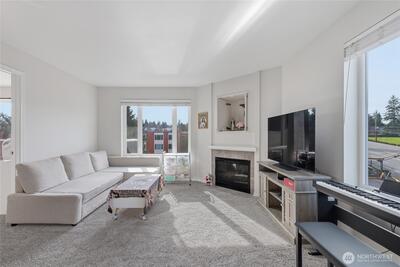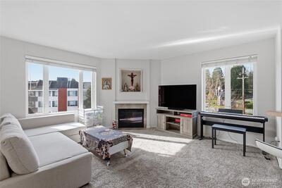 Perfectly located and attractively priced, this desirable end-unit condo in the sought-after Lake Washington Heights community offers comfort, convenience, and beautiful lake views. Step onto your private balcony with a morning coffee and take in peaceful sunrises over the water. The open-concept layout features a spacious living area with fireplace and a well-appointed gourmet kitchen, ideal for everyday living or entertaining. The building is meticulously maintained with durable steel and concrete construction. Includes two storage units and secured garage parking, with an additional parking space available for $50/month. Just minutes to Lake Forest Park Town Center, scenic walking trails, dining, and everyday amenities. Secure intercom entry and wheelchair-accessible design complete this exceptional home.