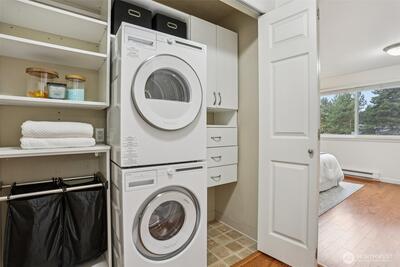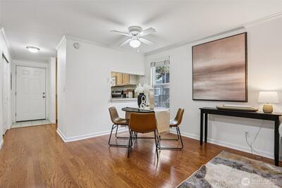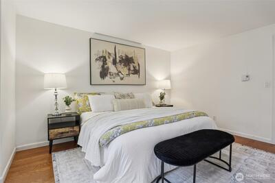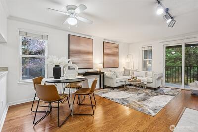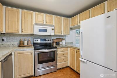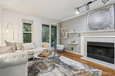 Rarely available light-filled corner unit in desirable Kirkland Place! This 2bed, 1bath condo features an open floor plan, hardwood floors, cozy wood-burning fireplace, granite counters, and a private deck overlooking peaceful park-like grounds with waterfalls and creek. Community amenities include a pool and an exercise room. Prime location near I-405, transit center, Evergreen Hospital, and Totem Lake Village with Whole Foods and Trader Joe’s. No rental cap.
