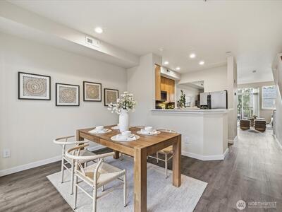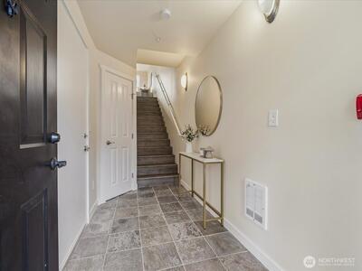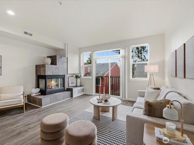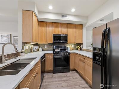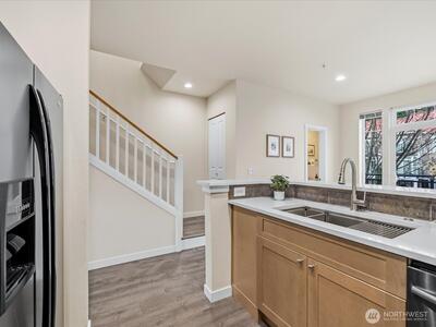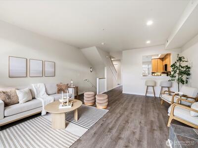 Beautifully updated townhome in a gated community with an unbeatable location! This light-filled home offers 3 bedrooms, 2.25 baths, and a spacious tandem garage with additional W/D hookups. The brand-new kitchen features quartz countertops, stainless steel appliances, and recessed LED lighting unique to this unit. New waterproof vinyl plank flooring and fresh interior paint enhance the bright living spaces, highlighted by vaulted ceilings, large windows, and a skylight. Enjoy breakfast in the sunlit dining area or relax by the gas fireplace. Step out onto the sunny balcony for added outdoor space. Walk to T&T, Target, Factoria Mall, and nearby restaurants, with quick access to I-405, I-90, and transit routes (203, 240) connecting to Bellevue, Kirkland, and the greater Eastside. Close to the 42-mile East Lake Sammamish Trail extending throughout the Lake Washington area. Nearby parks include Newcastle Beach Park and The Golf Club at Newcastle. Located in the award-winning Bellevue Scho