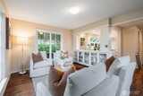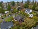 This charming home, located just steps away from Laurelhurst Park, is full of such great spaces. Walls of windows create light-filled formal day rooms that flow easily outside and capture pretty territorial views with Lake Washington and the Cascades beyond; if you are an early riser fiery sunrises await. The living room, with gleaming hardwood floors and a mantled fireplace, has a wall of built-in cabinetry to display your collectables and a door that opens to a quaint balcony with the same south easterly views. The kitchen is open to a family room and/or dining area on both sides making this the perfect space for easy entertaining, just out the kitchen door is a fun view patio for lounging and dining. The sunny main level primary suite has a lovely full tile bath true to the era and good closet space. The second main floor bedroom is currently used as an office and opens to a private rear deck, a three quarter bath completes this level. Both bedrooms overlook the back yard gard