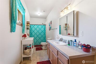Immaculate 4-bedroom, 3.5-bath Lakewood home on a spacious .25-acre lot, just minutes from JBLM, shopping, dining, and commuter routes! This beautifully maintained home offers a bright and inviting living room with a cozy fireplace for cool evenings and central A/C for warm summer nights. The gourmet-style kitchen features stainless steel appliances, generous counter space, and a welcoming dining area, with French doors leading to a private backyard complete with a covered patio - perfect for entertaining year round. Enjoy the convenience of a main level primary suite with a full bath and two walk-in closets, plus a versatile office/flex room ideal for remote work or additional living space. Upstairs offers three more generously sized bedroom, including a second primary suite with its own en-suite bath, providing flexibility for guests. An attached two-car garage and functional, flexible floor plan make this home as practical as it is stylish.