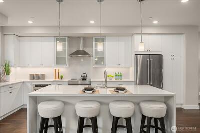 Discover hassle-free living at its finest in Sammamish’s most sought-after location where thoughtful design, modern technology & convenience elevate daily life. This contemporary residence welcomes you with open-concept living spaces filled with natural light, designed for connection, comfort & effortless entertaining. At the heart of the home a chef-inspired kitchen showcases top-of-the-line appliances & sleek designer finishes, blending beauty & performance for memorable gatherings. Throughout the home, high-end materials & curated details reflect a commitment to quality & style. Modern living is seamless with fully wired SMART systems featuring motorized Lutron shades, Sonos in-ceiling speakers for immersive sound & full security camera system for peace of mind. Every feature has been thoughtfully integrated for comfort & ease. This substantial home includes 3 spacious bdrms+ an office/den ideal for today’s work-from-home lifestyle. The top-floor flex space w/kitchenette, bathro