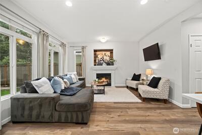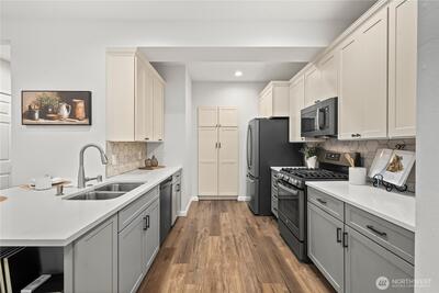 Welcome to this beautifully remodeled townhome in the desirable Parkhaven community of Maple Valley, offering space, style, and an unbeatable location close to the best of the area. This spacious home with a two-car garage provides comfortable living and a rare opportunity to own a home of this size at an approachable price point. The interior has been thoughtfully upgraded, beginning with the fully remodeled kitchen (2022) featuring quartz counters, a designer tile, soft-close cabinetry with pull-out drawers, and newer stainless steel appliances including a gas range. The kitchen flows into the dining and living area, creating an inviting space. Bathrooms were also remodeled in 2022, bringing fresh, modern finishes throughout. Additional improvements in recent years include luxury vinyl plank flooring, newer carpet, a custom laundry -washer and dryer, water heater replacement, and A/C for year-round comfort. Step outside to a private, fully fenced backyard with patio, perfect for rela