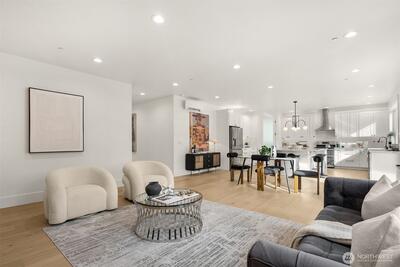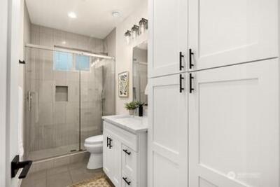 Welcome to this beautiful home. Top notch finishes meet you at the front door and take you thru ought the home. Tall ceilings and tall doors that make it feel even bigger. Quartz on the kitchen counter and the enormous island that can fit everyone around. all tile bathroom and heated floors. Primary bedroom has a personal steam shower great for our PNW weather or after a good workout. Deck in backyard covers you from any rain but the massive skylights let 100% of the sun thru for you to enjoy. Did I mention the ADU? Separate entrance and full size everything, with a 1,000SQFT 2 Bed you can use for yourself or rent out for potential passive income.