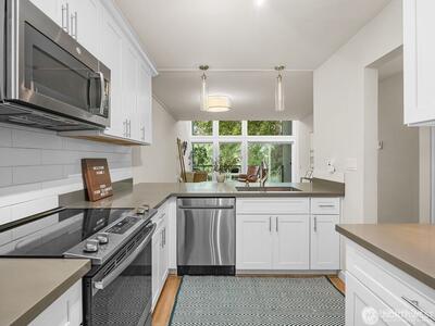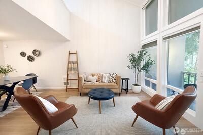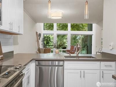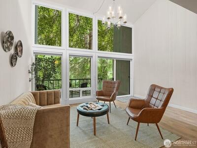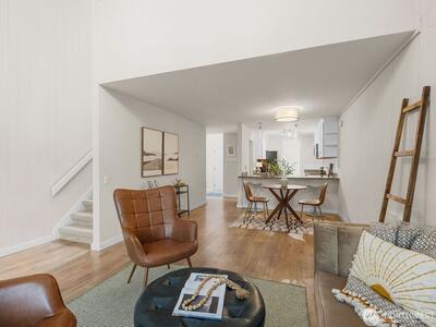 Private end-unit townhome in Redmond’s gated Sixty-01 community with peaceful water and greenbelt views. This beautifully updated 2-bedroom home features an open living space with engineered hardwood floors, quartz kitchen counters, stainless appliances, and abundant natural light. The private deck overlooks a serene community pond with waterfall, picnic area, and lush green space—creating a tranquil outdoor setting rarely found in condo living. As an end unit, this home offers added privacy and quiet while still enjoying all the amenities of Sixty-01’s 83 acres of landscaped grounds, walking trails, lakes, pools, and recreation areas. Conveniently located just minutes from Microsoft, downtown Redmond, and major Eastside tech hubs. A rare opportunity to enjoy nature, privacy, and convenience all in one home.