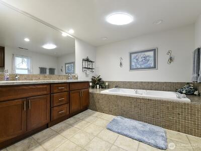 Gorgeous 5 bedroom 3 Bath home 3156 sqft. on LARGE LOT over quarter acre. Nestled in the Heart of University Place. Open concept living. Separate formal dining and living room. Gourmet kitchen with eating area. Granite countertops in Kitchen and Bathrooms. Kitchen w/ pantry. Newer Gas fireplace with heating w/ remotes. Newer Furnace and AC unit. Guest bedroom upstairs/ or recreational area. Main floor utility room with plenty of storage. Primary bedroom has large closets and linen closet. Soaking Jacuzzi tub/lights. Shower too. 5pc. primary bath. Two large guest bedrooms with another full bath upstairs. Upgraded wood trim throughout home. Main floor is a good sized bedroom and Full bath with shower. Air Conditioning. Sprinklers front and back yards. Minutes from Chambers Bay. Golf Course. Scenic Trails and Outdoor Recreation. Easy access to I-5 & WA-16 for commuting. NO HOA. Plug in side of garage. RV PARKING