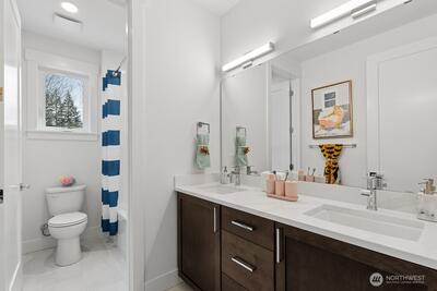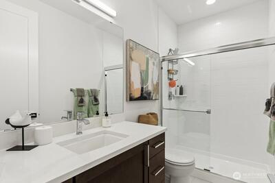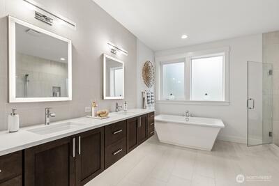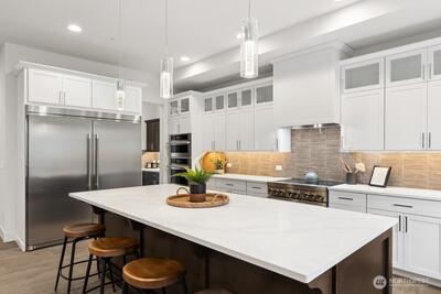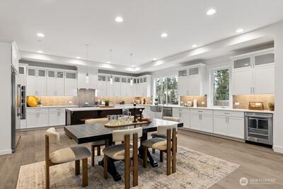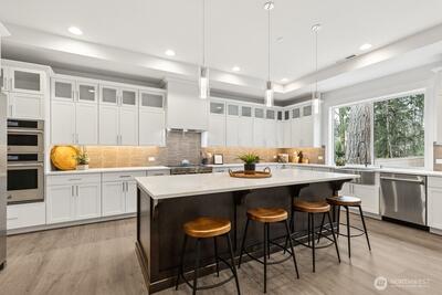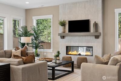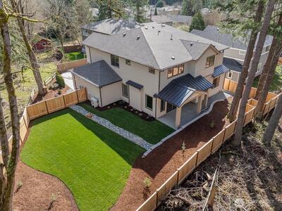 FINAL HOME now available at Grove at Beaver Lake - Lot 1 is 4273 sq feet of living space, nestled on a private lot tucked away off the road. Step inside to an impressive great room layout and private outlook from over-sized windows. Entertainer's dream kitchen has quartz counters, Huntwood soft close cabinets with pull out shelves, 66" refrigerator, induction range/oven, wall mounted micro and second oven, butler's pantry, beverage fridge, & more. Separate dining room for formal gatherings, and den/office. Large double slider opens to a covered patio with heater and huge fenced/landscaped backyard. Upstairs the primary spa bath has heated floors, extensive tile, soaking tub & massive glass walk-in shower. 3 more bedrooms, loft, and laundry room that connects to both hall and primary walk-in closet for convenience. Sought after Sammamish location, one mile north of Beaver Lake Park. Quintessential PNW living- quiet and peaceful, yet close to shopping and access to I-90/520. AC/heat pump