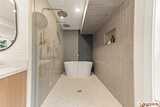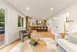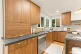 Fully reimagined Mid-Century Modern in the heart of Totem Lake, thoughtfully remodeled while preserving the architectural elements that make this era so enduring - all within the highly regarded Lake Washington School District. Vaulted ceilings and clean architectural lines create an immediate sense of luxury. A restrained material palette of warm wood cabinetry and dark stone surfaces grounds the open living spaces, while Bosch appliances anchor the kitchen in performance and simplicity. A built-in wet bar with wine refrigeration extends the material palette, creating continuity throughout the home. The primary suite unfolds into a spacious five-piece bath conceived as a true retreat: a large-format wet room with dual shower heads, a freestanding soaking tub placed with intention, dual vanities, and a separate water closet. Recent upgrades include a new roof and new windows, reinforcing both performance and longevity. At the center of the home, the original curved fireplace remains un