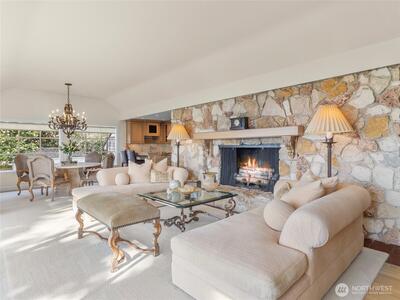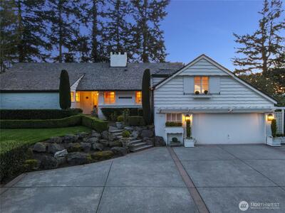 Timeless elegance positioned on the enchanting high bank in Normandy Park, this storybook home displays a blend of modern layout and traditional charm. A panoramic backdrop of the Puget Sound and Olympic Mountains offer serene views of rare and unparalleled living and entertaining. Step inside to thoughtfully curated sophistication at every turn with custom iron pendant lighting, gourmet kitchen and wet bar, tranquil primary suite, and the grand living space with uninterrupted flow into the premier outdoor oasis. Enjoy the exclusive deeded Lot A beach rights providing access to The Cove, an 18-acre Puget Sound waterfront property including a boat launch, clubhouse and more. Experience the magical ambiance of this one of a kind estate on highly coveted Edgecliff Drive, a true rare gem.