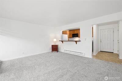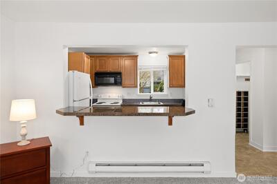 Experience the perfect blend of convenience and comfort in this adorable updated Des Moines condominium, ideally situated just one block from the Marina and Beach Park. This end-unit home offers a peaceful retreat with a practical layout and several recent refreshments that make it move-in ready. Step inside to find a clean, inviting interior featuring brand-new carpet and a fresh coat of paint throughout, providing a neutral canvas for your personal style. The kitchen is well-equipped with durable granite countertops and a functional eating bar that opens directly into the main living area, making the space feel connected and open. Originally remodeled from the studs in 2006, the unit maintains a contemporary standard of quality, including a bathroom finished with granite accents. For added convenience, the home comes with all appliances, including a washer and dryer combo. One of the most practical features of this unit is the designated parking space located just steps away from you