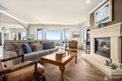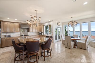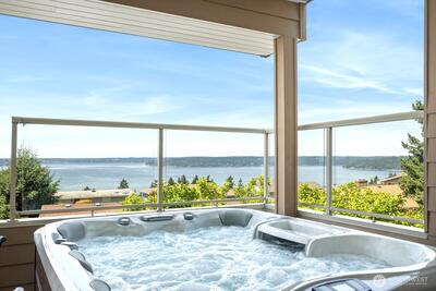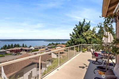 Welcome to VILLA VISTA. Located on a quiet, tree-lined private drive, this luxurious boutique estate has 180 DEGREE, UNOBSTRUCTED, PANORAMIC, WATER, MOUNTAIN, CITY & SOUND VIEWS. Private, secluded, and so quiet you can hear the birds sing! Soaring ceilings in entry welcome you into the open, flowing floorplan. Good morning w/ windows galore & tons of natural light. 2 expansive view decks to take in the gorgeous views. Gourmet Kitchen w/ island, SS appliances, Sub-Zero, walk-in pantry, butler's pantry, private patio off kitchen, and plenty of storage. Great Room has luxurious bar & kitchenette. The 1700+ bottle temp-controlled wine cellar is pure WOW! Great location in entry for home elevator. Flex Room in lower level can convert to 4th bedroom. 2 HVACS & Central A/C. Fully fenced back area. RV/boat parking available. No HOA.