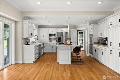 Enjoy this stunning custom-built luxury home on 2.58 acres with breathtaking Mount Rainier views! This fully remodeled 4,779 sf estate in a gated community features open-concept living, soaring ceilings, and many tasteful updates that perfectly brings this custom built home into modern times. This home features an expansive chef’s kitchen, a luxurious primary suite with a spa-like bathroom, and elegant living spaces designed for comfort and style. The two upper bonus rooms provide versatile space for work or play. Don't miss the heated shop/barn combo, 2 exterior water features, the new HVAC system with A/C, and RV garage. This home is also just minutes to JBLM! A rare opportunity for those seeking elegance, space, and modern convenience.