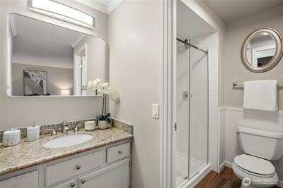 Some homes are on English Hill. Others feel like they were made for it. Set among quiet streets and towering evergreens in the coveted Northshore School District, this beautifully maintained home offers the kind of updates and comfort buyers hope to find already done. Rich hardwood floors bring warmth to the main living spaces, while tile and new carpet adds comfort underfoot. The kitchen easily flows into the surrounding gathering spaces and features a charming garden window—the perfect sunny spot for herbs, houseplants, or simply enjoying views of the backyard while you cook. When Northwest evenings turn cool, a cozy gas fireplace insert creates the perfect place to unwind. Upstairs, two newly remodeled bathrooms bring a fresh, modern touch, while a brand-new furnace provides year-round comfort and peace of mind. Step outside and the lifestyle continues. A stunning ironwood deck—both beautiful and incredibly durable—overlooks the landscaped and fully-fenced yard
