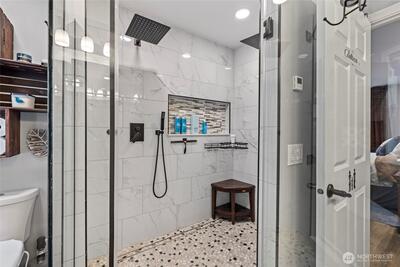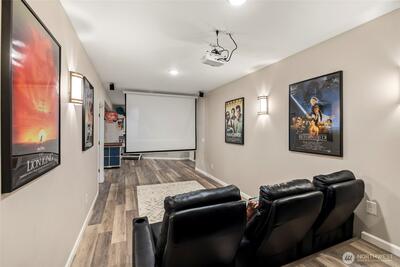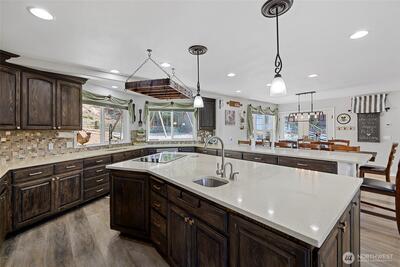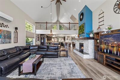 Set on a serene private estate, this extraordinary Issaquah property offers a rare blend of luxury, flexibility, and lifestyle. The 5,790 SF main residence is complemented by a permitted 1,280 SF ADU with 1 bedroom, 1 bath, loft, and its own attached garage, ideal for additional income potential, multigenerational living, guest accommodations, or private work-from-home separation. Together, the property offers 7,070 SF of total living space. Thoughtfully updated over the years, the vaulted cathedral home features quartz countertops, refinished kitchen cabinetry, new appliances, remodeled baths, LVP flooring throughout, crown molding, upgraded faucets, updated light fixtures, door hardware, fans, switches, smart switches, fresh interior paint, and an enhanced primary suite with remodeled bath and upgraded closet. The finished basement adds exceptional versatility with a theatre, open craft room, and game room. Outside, enjoy tranquil forest surroundings, lush landscaping, terraced groun