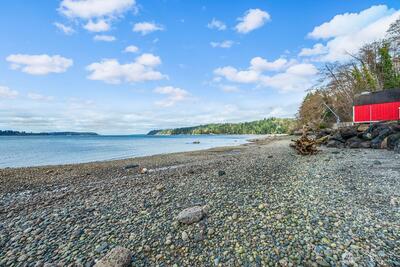Discover the perfect west-side Vashon Island getaway in this charming 1-bedroom waterfront cabin, set on 90 feet of coveted Colvos Passage shoreline. Enjoy a true maritime lifestyle with your own davit, moorage, and endless opportunities for boating, crabbing, fishing, and beachcombing right from your front yard. This home features bamboo flooring, heated bathroom floors, newer appliances, Hardi-plank siding, and a durable metal roof. The airy upper-level bedroom offers cooling A/C and serene views, while the expansive wraparound deck provides exceptional outdoor living and space to gather. An additional bunkhouse and an outbuilding with a workbench create flexibility for guests, hobbies, and storage. Whether you’re seeking a weekend retreat or a simple island escape, this is your chance to experience the magic of Colvos Passage—quiet mornings, sparkling sunsets, and the peaceful rhythm of the Sound. Come make this your waterfront sanctuary.