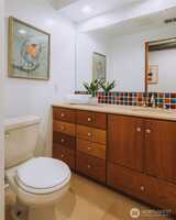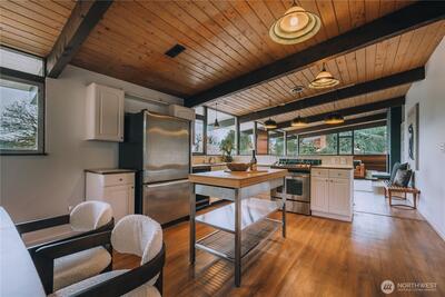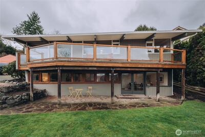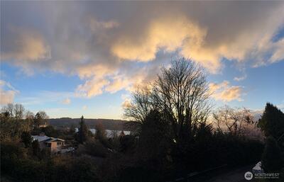 Fantastic mid-century home in the Matthews Beach neighborhood with expansive windows and views of the lake and surrounding area. This home's living spaces are connected to the exterior spaces allowing you to feel grounded and tethered to our beautiful region all year long. 3 bed 2 bath with an additional flex space for guests or just a home office or maybe a studio to paint in. The finished basement has tons of storage, great ceiling height a bath, wet bar and tons of natural light. Two attached garages as well as covered carport parking provide plenty of room for vehicles or even more storage. Mere blocks to the Burke Gilman Trail. Move in ready but with room for you to add your own personal touches. Please come see this gem. You won't be disappointed.