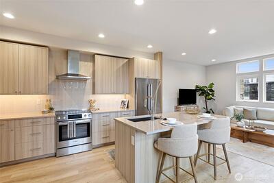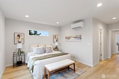 Discover contemporary comfort in this bright new construction home in Ballard. Thoughtful design and sleek finishes highlight the open-concept main level, creating an inviting space that begins with a warm, welcoming entry. Two bedrooms are located on the main floor and share a full bath, while the entire top level is dedicated to a private primary suite—offering a peaceful retreat from the rest of the home. The home also includes a designated parking space with EV charging and a spacious living and dining area ideal for entertaining or relaxing. With convenient transit nearby and easy access to Ballard’s vibrant neighborhood—from local breweries and the Ballard Farmers Market to the waterfront at Shilshole Bay—this home blends modern style, everyday comfort, and unbeatable convenience.