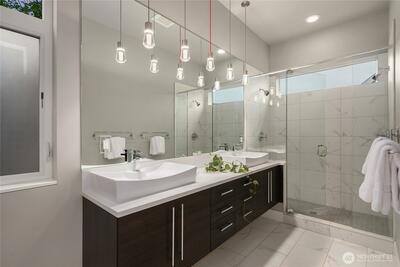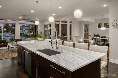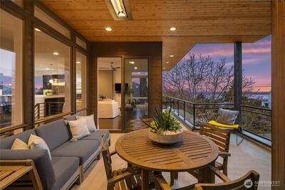Views! Views! And, more Views! A rare opportunity to own a home with sweeping Puget Sound views. Commanding one of Sunset Hill’s most coveted settings, this residence captures panoramic vistas from Mt. Rainier to Whidbey Island, spanning Shilshole Marina, Puget Sound, and the Olympic Mountains—an unforgettable backdrop from sunrise to sunset. Built in 2013 and meticulously maintained, the home was designed to embrace light, volume, and surrounding beauty. The reverse living floor plan crowns the home with an expansive great room, soaring ceilings, and a dramatic wall of glass slider windows. A refined chef’s kitchen with professional-grade appliances anchors the entertaining level and opens to a covered deck for year-round outdoor living. Imagine quiet mornings with coffee and soft water views, and evenings on the rooftop deck as the sun melts into the horizon. Four bedrooms, four baths, an office, and a bonus room offer flexibility for modern living. The serene primary
