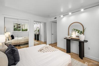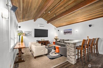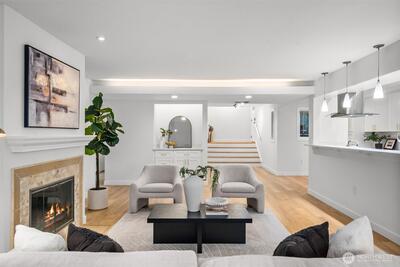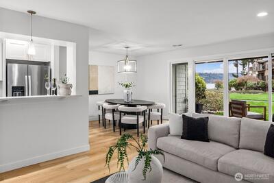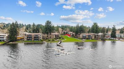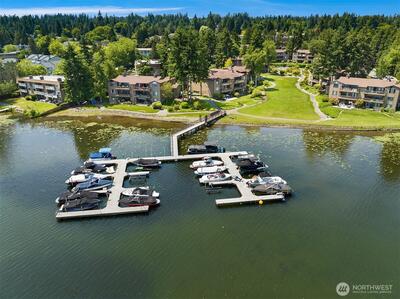 A true retreat for the at-heart lake lover, this rare 3-bedroom + flex room residence on Lake Sammamish offers the largest floor plan, captivating water views, and a DEEDED boat slip. Nestled within the coveted Lake Villas, a gated, resort-style community, you’re welcomed home by lush, manicured grounds & a sense of everyday escape. Perfectly south-facing, this light-filled & tastefully updated retreat features a spacious living area w/ stunning lake views, a cozy fireplace, & a charming coffee bar—flowing seamlessly to a walk-out patio, ideal for sunrise mornings & glowing sunset evenings over the water. The timeless kitchen shines w/quartz countertops, newer appliances, & sleek modern cabinetry, while updated baths, fresh finishes, & a newly painted interior create an ELEVATED LIVING experience. A versatile flex space offers endless possibilities—home office, fitness studio, or additional storage. Enjoy highly sought-after, sizable deeded boat moorage, making spontaneous lake d