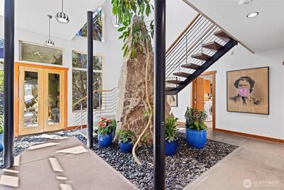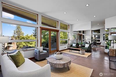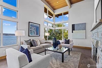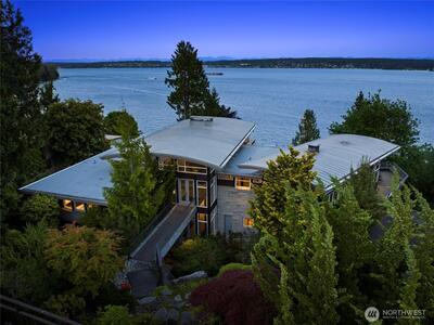 Exceptional Laurelhurst 1.17 acre Lake Washington waterfront estate w/155’ of prime frontage! 6,488SF 5BR 5.5BA home w/elegant atrium entry w/standing granite stone, barrel ceilings & walls of windows w/sweeping views of the sparkling waters of Lk WA, Mt Rainier & the Cascades, & golden sunrises from nearly every room. 2000 built one-of-a-kind masterpiece w/unique spaces & NW wood finishes, expansive view decks & patios, & 4 car garage. Arboretum-like grounds w/mature plantings & winding walkways to level lakeside gardens, walk-in cove & 95’ private dock on 2 lots. A+ location near Laurelhurst Beach Club, U-Village & easy commute to Seattle & Bellevue. Don’t miss this rare opportunity to own one of the great Laurelhurst waterfront retreats!