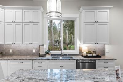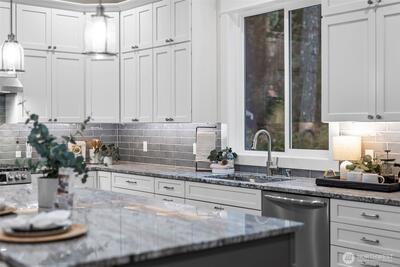 Finally - Gig Harbor has a brand new, spacious and bright home for you, priced well under $1 million ! This NW Contemporary styled home features large principal rooms, with loads of light from the many windows, a fabulous gourmet kitchen, walk in pantry, and a large covered patio overlooking your to-be-hydroseeded back yard, all on the main level. Upstairs we find a spacious TV/bonus area at the top of the stairs, leading to a huge primary suite with a bath to fall in love with, upper level laundry room with a sink, spacious guest bath and two additional bedrooms. On a large, level lot in Lake Minterwood, this home offers room - not just inside, which as you can see from the pictures, features quality everything, but also outside, where the parks and space along the lake in the development allow for a country lifestyle just minutes from Gig Harbor.