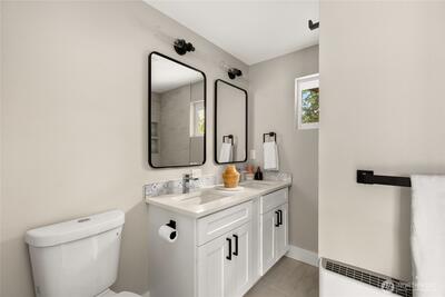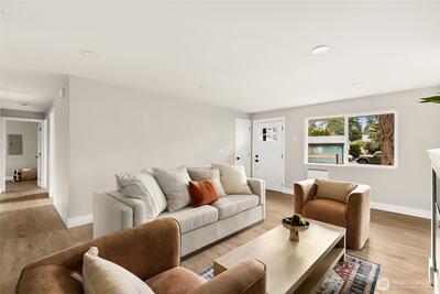 Experience the best of Seattle living in this impeccably reimagined 3 bedroom, 2 bathroom rambler, on the market perfectly in-time for the beauty of the Pacific Northwest spring. Nestled on a private, sun-drenched 5,000 sq. ft. lot on a private cul-de-sac in the heart of Haller Lake, this home has undergone a rare studs-out restoration, offering the perfect blend of modern new-construction luxury and mid-century charm. The heartbeat of this home is the luxury kitchen boasting custom cabinets, expansive luxury quartz counters and premium stainless steel appliances. The open concept living space flows seamlessly to the outdoors, highlighted by luxury flooring and an abundance of natural light. Enjoy the confidence of a completely rebuilt envelope James Hardie siding and Milgard vinyl windows. No detail left untouched in the interior with new electrical, plumbing and zone controlled energy-efficient ENVI heating throughout. Retreat to a private, professionally landscaped yard featuring