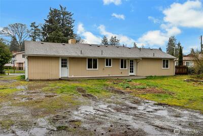 Welcome to this charming Lakewood WA rambler located on a quiet residential street with convenient access to JBLM, I-5, and Highway 512. This 3-bedroom, 1.75-bath single-story home offers 1,037 square feet of comfortable living space with an open layout that connects the living room, dining area, and kitchen—perfect for everyday living and entertaining. The primary bedroom features a private bath, while two additional bedrooms provide great flexibility for guests, a home office, or hobbies. Large windows bring in natural light and create a bright, welcoming atmosphere throughout the home. Situated on a spacious 13,971 square foot lot (nearly 1/3 acre), the property offers a large backyard with plenty of room for gardening, outdoor entertaining, pets, or future possibilities. Additional highlights include an attached two-car garage, RV parking, and level yard space. This home is ideally located near Lakewood shopping, dining, parks, schools, and commuter routes, making it an excellent