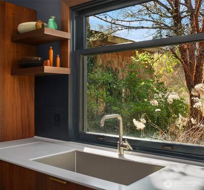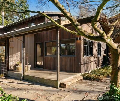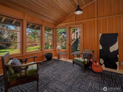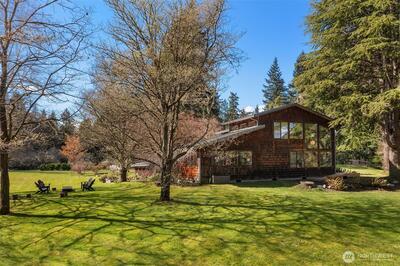 On the Northend of Vashon Island, behold an uncommon union of intentional design and refined living, gracefully situated on 4 rolling acres. Striking architecture unfolds upon approach, surrounded by a tapestry of greenery on the cusp of bloom. A stone courtyard opens to a substantial cedar clad covered entry. Inside, A parade of panoramic windows invite abundant natural light in every season. Tailored embellishments inspire interest at every turn! The kitchen is renowned Henrybuilt, marrying craft design and pragmatic innovation. A curated suite of integrated appliances by Miele, Gaggenau, Sub Zero, balance the interior linear composition. A continuity of subtle woodwork and cabinetry echos Northwest, minimalist architecture from room to room. Designed for enduring comfort, the dining area anchors daily living, flowing effortlessly to a living room crowned by a dramatic vault, a private den and sitting room, and an understated primary suite in the south east corner. Outside, the lands